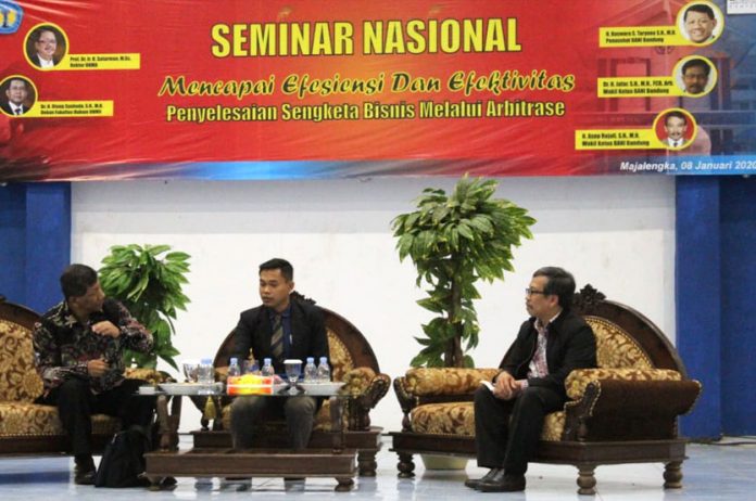 Adapun tema utama yang diangkat dalam seminar dalam rangka Dies Natalis tersebut “Mencapai Efesiensi dan Efektivitas Penyelesaian Sengketa Bisnis Melalui Arbitrase” dengan Pembicara H.Kuswara Taryono, SH,MH, Jafar Sidik, SH, MH, FCB Arb dan H. Asep Rojali, SH.MH dari perwakilan BANI Bandung.