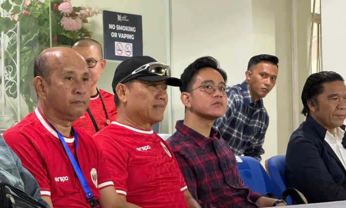 Wakil Presiden (Wapres) Gibran Rakabuming menyaksikan langsung pertandingan Timnas Indonesia U-20 melawan Suriah dalam lanjutan ajang Mandiri U-20 Challenge Series 2025 di Stadion Gelora Delta, Sidoarjo, Jawa Timur, Senin (27/01/2025).
