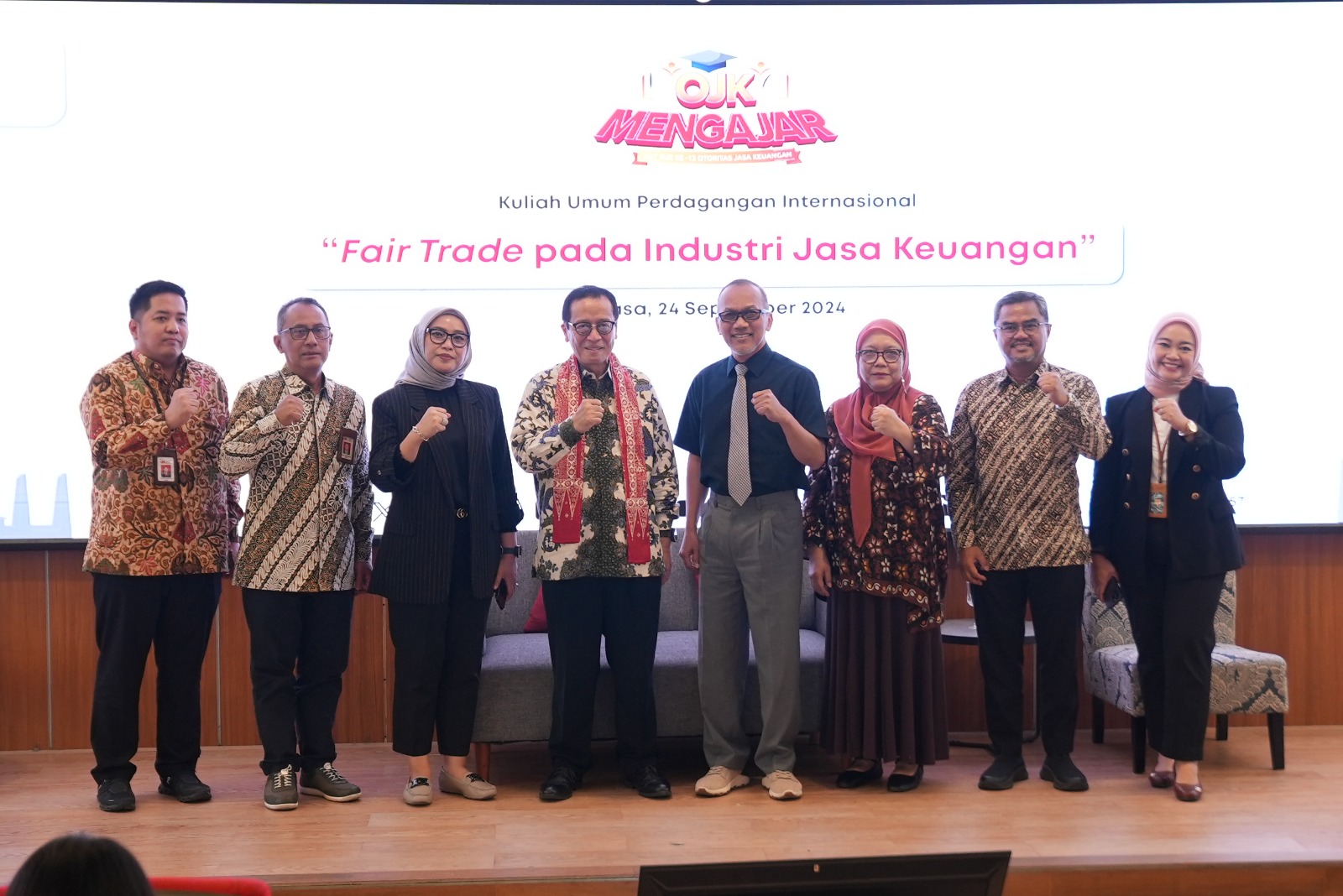 Dalam sambutannya, Sigid mengapresiasi kegiatan OJK Mengajar ini dan berharap mahasiswa dapat mengoptimalkan kegiatan ini untuk menambah ilmu dan pemahaman praktis para mahasiswa.