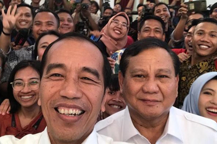 “Sangat mesra,” balas Jokowi. “Banyak yang enggak suka ya,” timpal Prabowo tertawa.