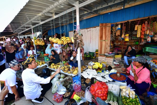 Presiden tampak berinteraksi dengan pada pedagang, menanyakan harga, dan memberikan bantuan modal kerja bagi mereka. Saidah, salah seorang pedagang, mengaku bersyukur bisa berjumpa langsung dengan Kepala Negara.