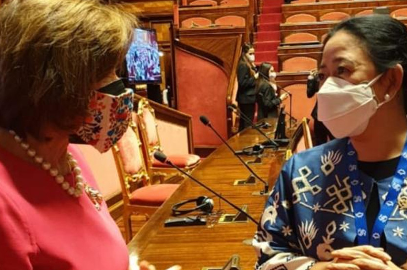 Seventh Group of 20 (G20) Parliamentary Speakers’ Summit (P20) dibuka Kamis (7/10/2021), oleh Perdana Menteri Italia di Palazzo Madama, Gedung Senat Italia di Roma. Puan bersama Pelosi sempat berbincang sebelum gelaran P20 dimulai.