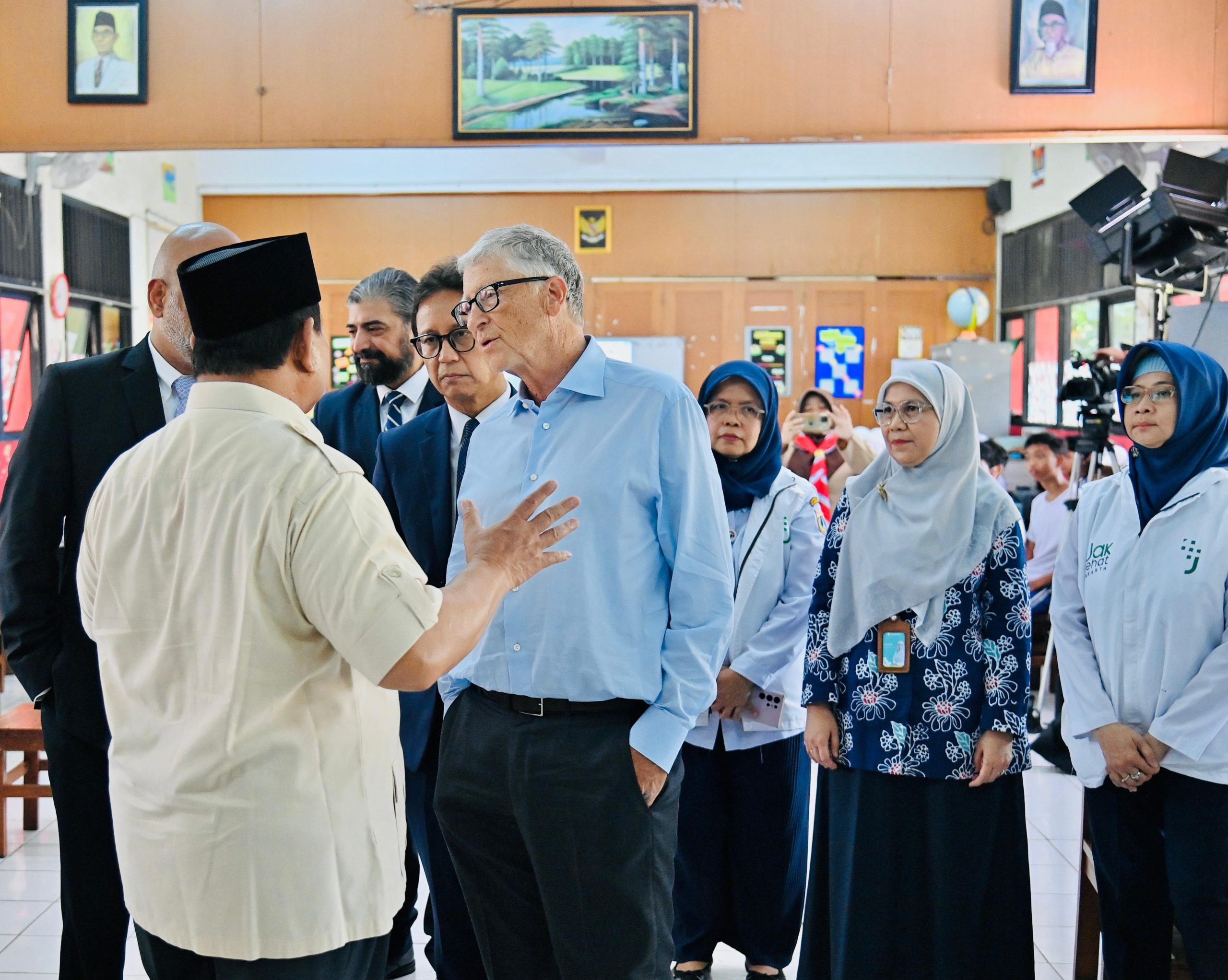 Dalam kunjungan tersebut, Presiden Prabowo dan Bill Gates sempat berbincang hangat dengan para siswa dan melihat langsung proses distribusi makanan. Selain meninjau program MBG, Presiden dan Bill Gates juga meninjau layanan cek kesehatan gratis yang disediakan bagi murid-murid sebagai bagian dari pendekatan terpadu antara gizi dan kesehatan anak.