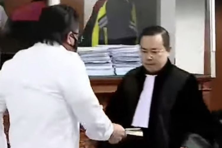 Mantan Kepala Divisi Profesi dan Pengamanan (Kadiv Propam) Polri Ferdy Sambo langsung menyerahkan buku hitam yang biasa ia pegang kepada koordinator tim penasihat hukumnya, Arman Hanis, Senin (13/2/2023) Momen tersebut terjadi usai Ferdy Sambo dijatuhi hukuman mati oleh Ketua Majelis Hakim Wahyu Iman Santoso dalam kasus pembunuhan berencana Nofriansyah Yosua Hutabarat atau Brigadir J di ruang sidang Pengadilan Negeri (PN) Jakarta Selatan. Pantauan Kompas.com, setelah hakim Wahyu selesai membacakan putusan dan meninggalkan ruangan, Ferdy Sambo terlihat berdiri dan langsung berjalan ke arah meja tim kuasa hukumnya. Pada saat itulah, Sambo menyerahkan buku yang biasa ia pegang kepada Arman Hanis.