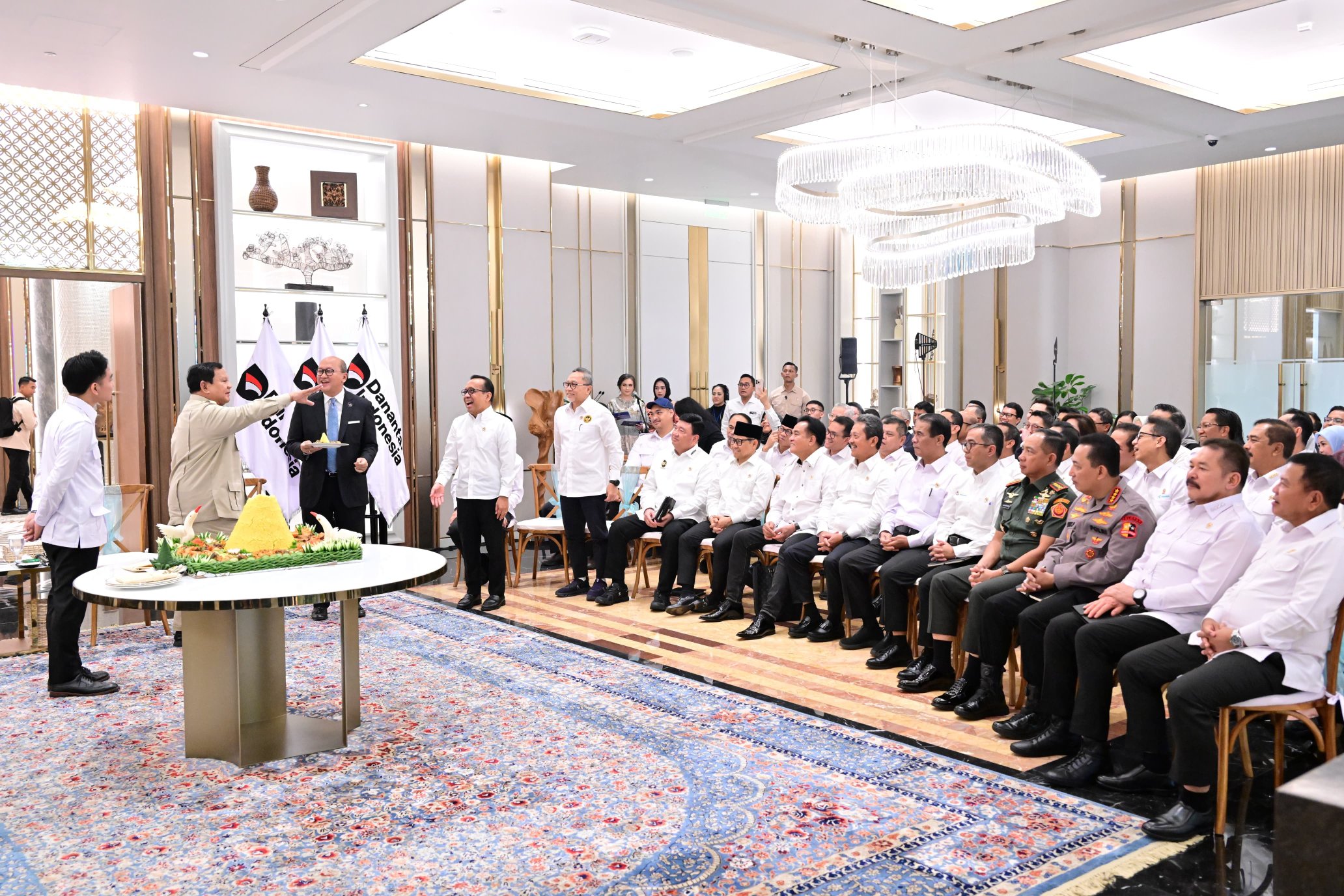 Presiden Prabowo tiba di lokasi peresmian dan disambut langsung oleh Wakil Presiden Gibran Rakabuming serta Kepala BPI Danantara Indonesia Rosan Roeslani. Acara dilanjutkan dengan laporan singkat dari Kepala BPI Danantara, doa bersama yang dipimpin oleh Menteri Agama Nasaruddin Umar, serta pemotongan tumpeng oleh Presiden Prabowo yang kemudian diserahkan kepada Kepala BPI Danantara sebagai bentuk syukur.